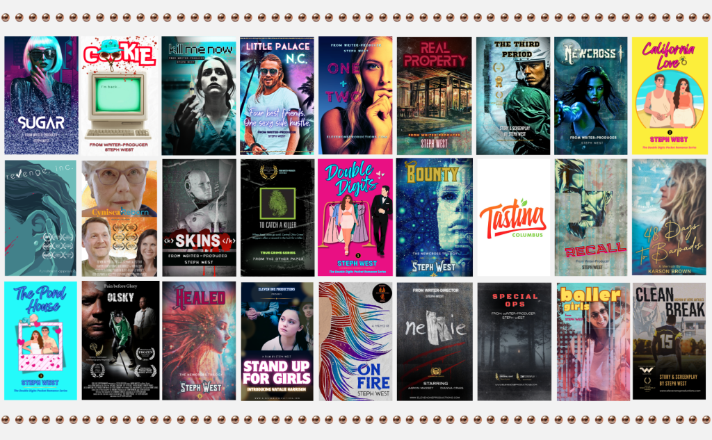 Award-winning author, screenwriter, producer, and director Steph West creates mixed genre stories from action-adventure and fantasy to sports and romance. The through-line in all her creations is a dedication to featuring three-dimensional characters of all shapes, sizes, and professions. West is a former Gannett/USA Today Network and Fox Sports Ohio journalist, and a current indie publisher at Red Fern Press, and indie writer-producer at 11/1 Productions. She hopes you find a story you love here.