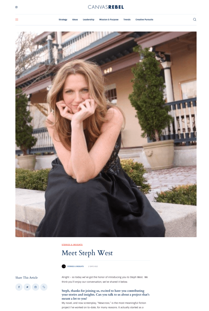 Canvas Rebel caught up with Steph West to learn more about her book and screenplay project Newcross, her thoughts on career pivoting and how to support creatives in the age of AI.